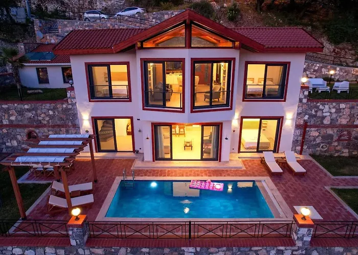 Olive Vista Villa Fethiye heeft een terras met uitzicht op de berg en ligt op 40 minuten rijden van de luchthaven Dalaman.